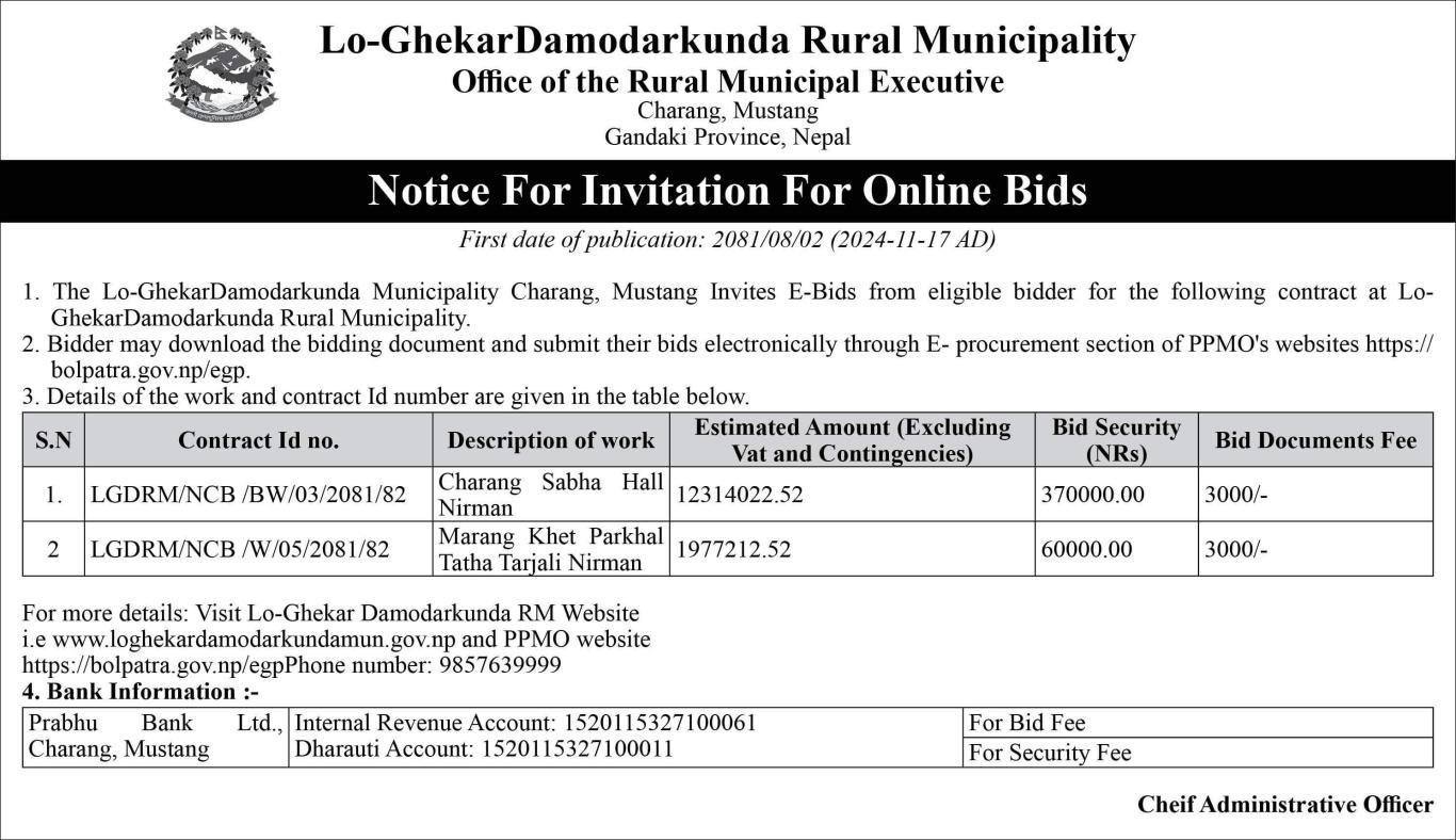 » Notice For Invitation For Online Bids (2081/082) !!!